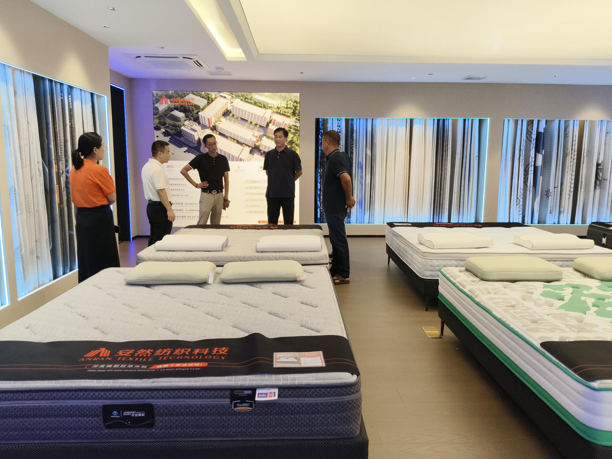 福建省安然紡織科技有限公司成立于2012年,注冊資金5888萬元,廠區占地200畝,建筑面積15萬平米,現有員工500多人,主要致力于3D材料、3D面料、針織提花面料、床墊、枕頭、軟床、沙發、餐桌椅等系列產品的研發、生產及銷售,是一家擁有自營進出口權的國家高新技術企業,產品遠銷國內外。